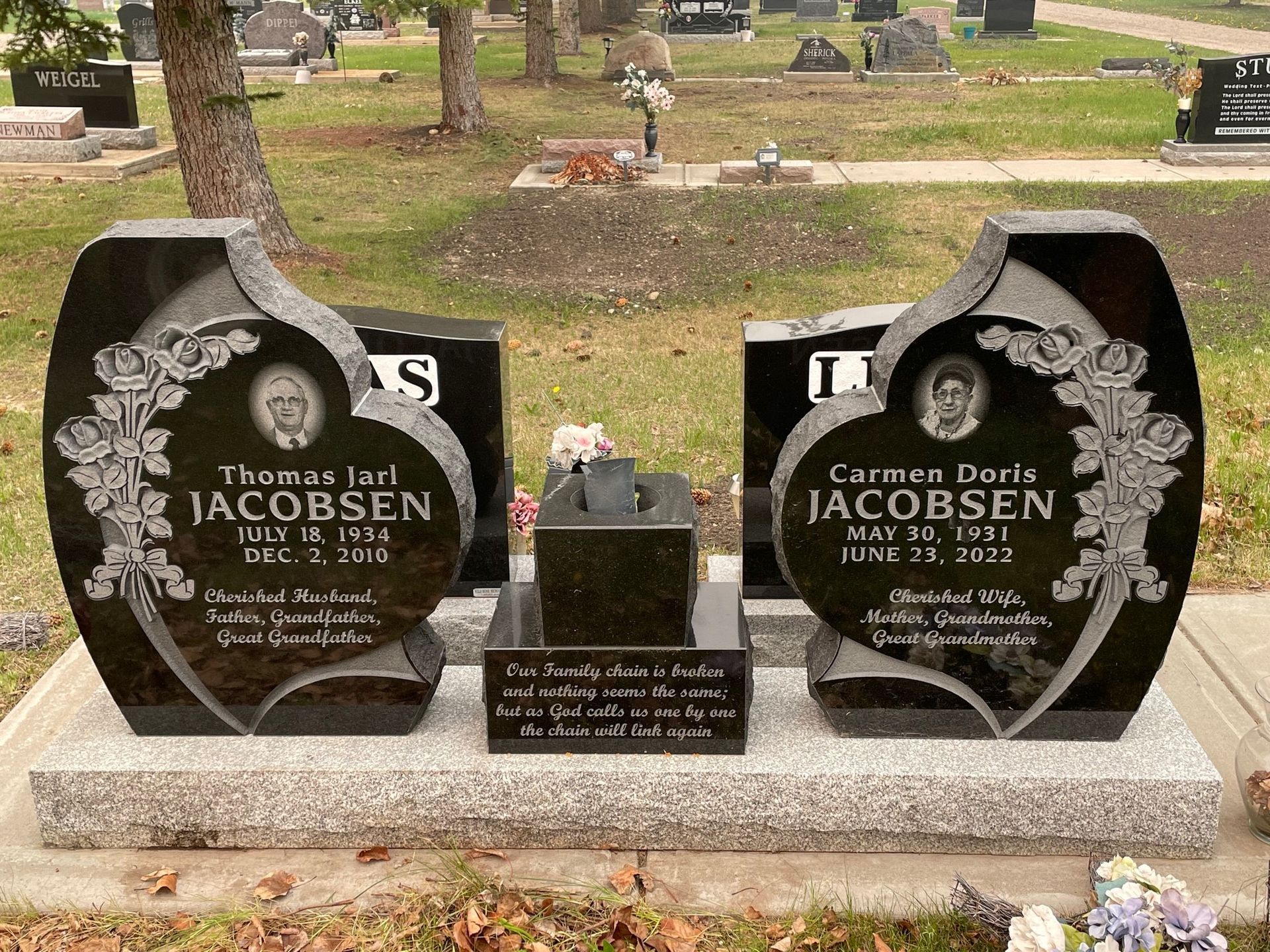 Finding the right gravestone in Olds for your loved ones can be a challenging search. At Serenity in Granite, we want to make it as easy as possible to find the right memorial stone for you. If you have an idea, bring it to us and we’ll be able to craft the perfect commemorative upright grave stone to suit your taste.