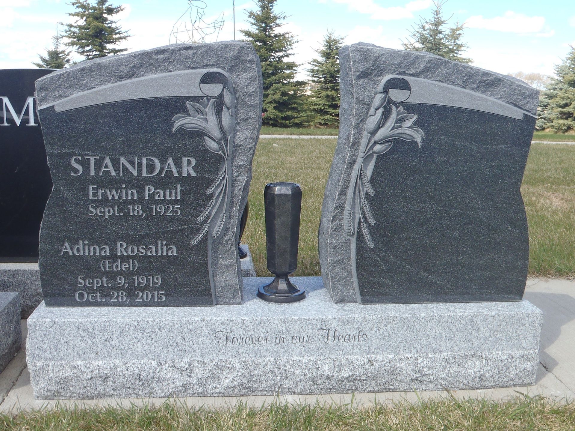 Finding the right gravestone in Olds for your loved ones can be a challenging search. At Serenity in Granite, we want to make it as easy as possible to find the right memorial stone for you. If you have an idea, bring it to us and we’ll be able to craft the perfect commemorative upright grave stone to suit your taste.